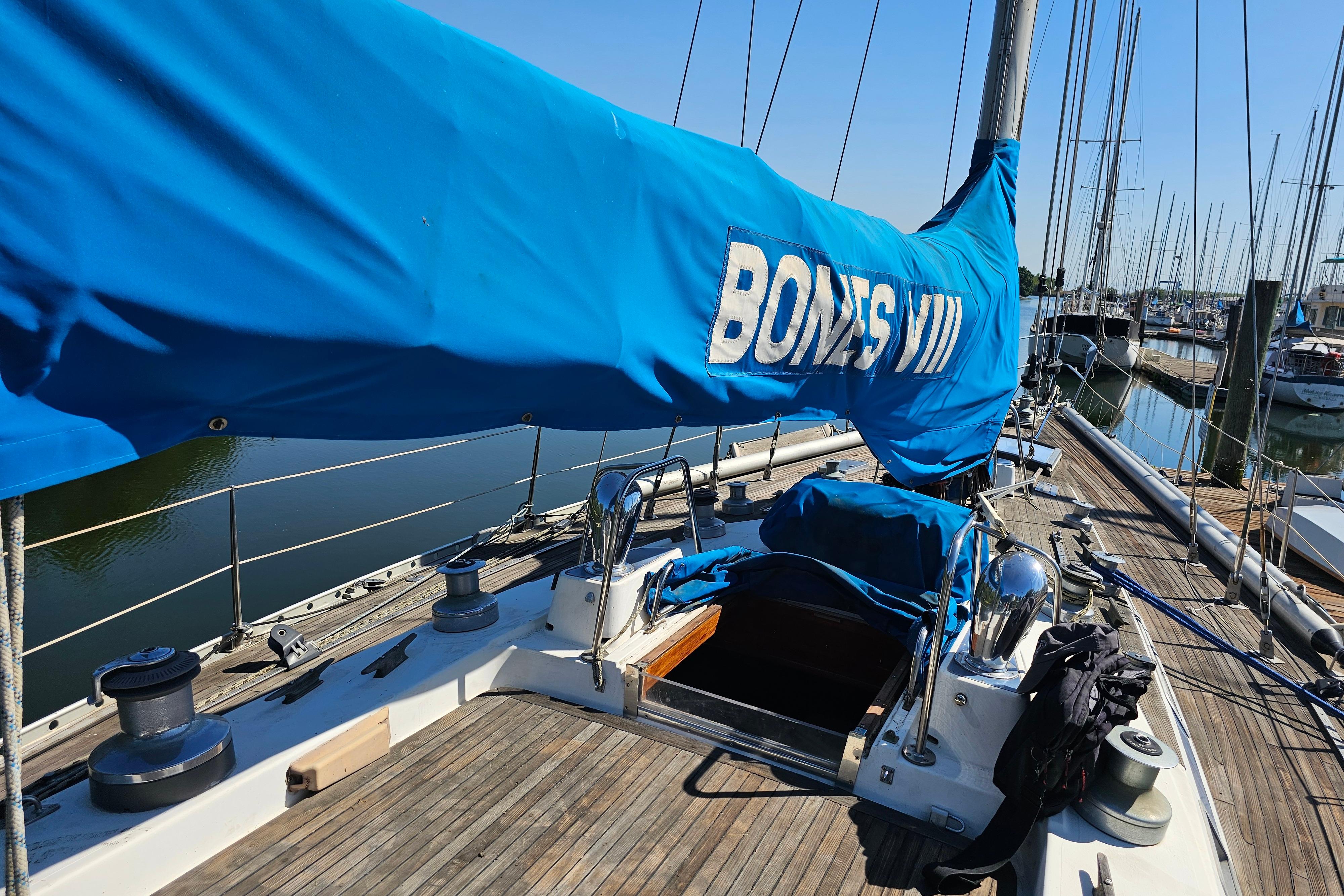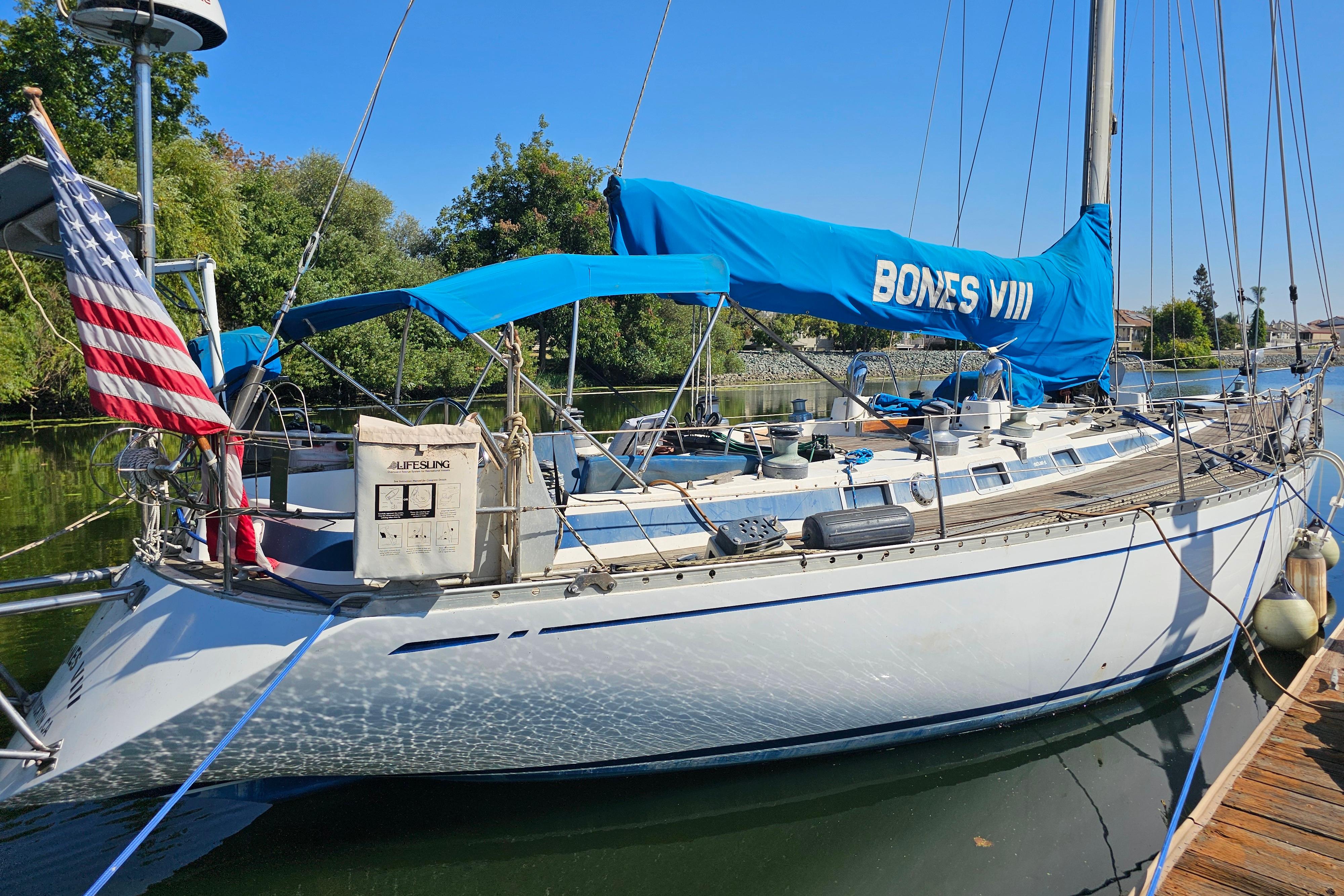 Bones VIII was purchased by the previous owner in 1984 in Fort Lauderdale, FL. She sailed on her own bottom through the Panama Call up the coasts of Central America and Mexico to the Bay Area, where she settled into a berth in Stockton behind the owner’s residence on the San Joaquin River Delta.