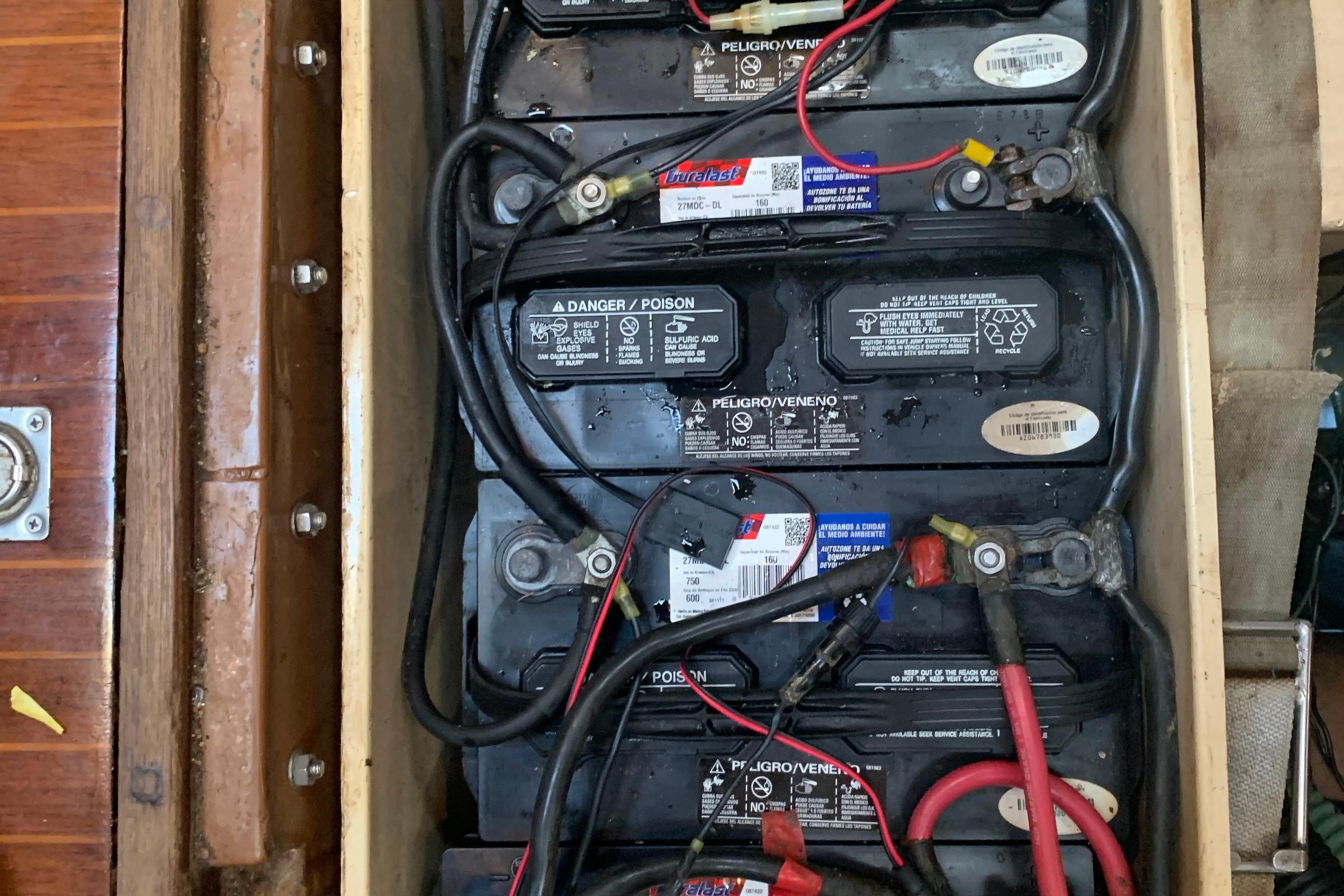 - Batteries: 5 - 105amp, lead acid batteries, (4 house, 1 starter), new in 2022