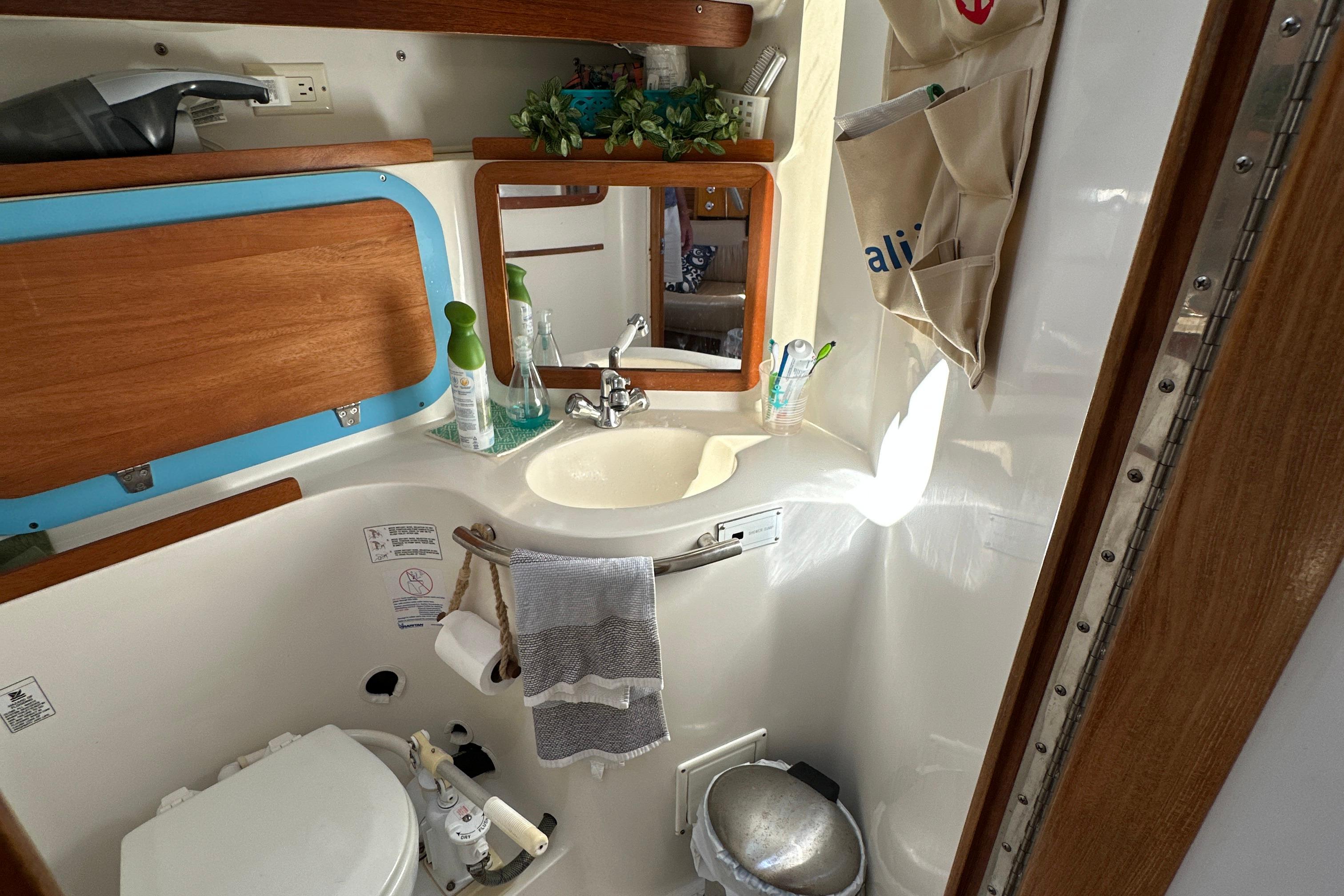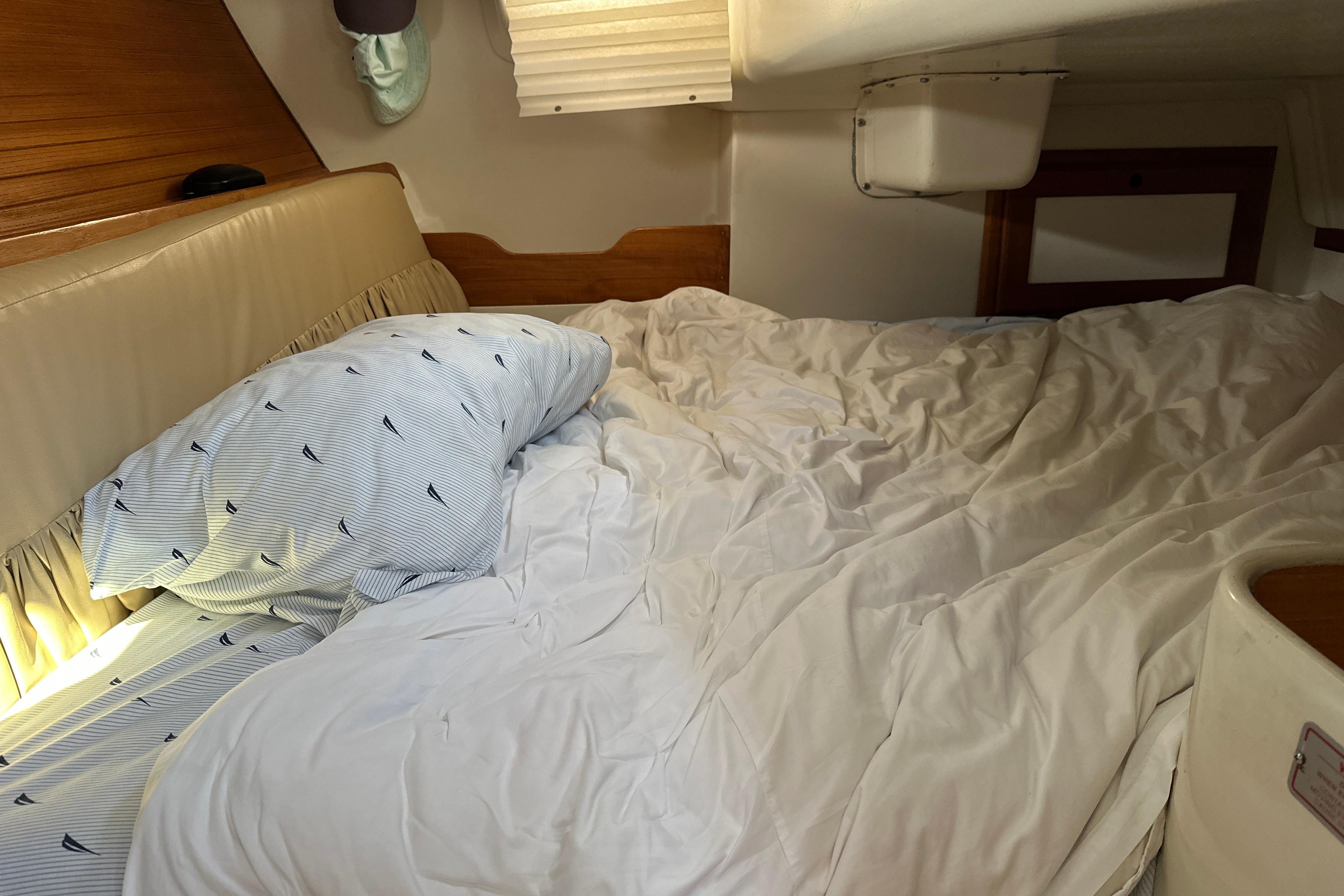 double, and a single settee. She is a very roomy 32 footer. The head is to starboard