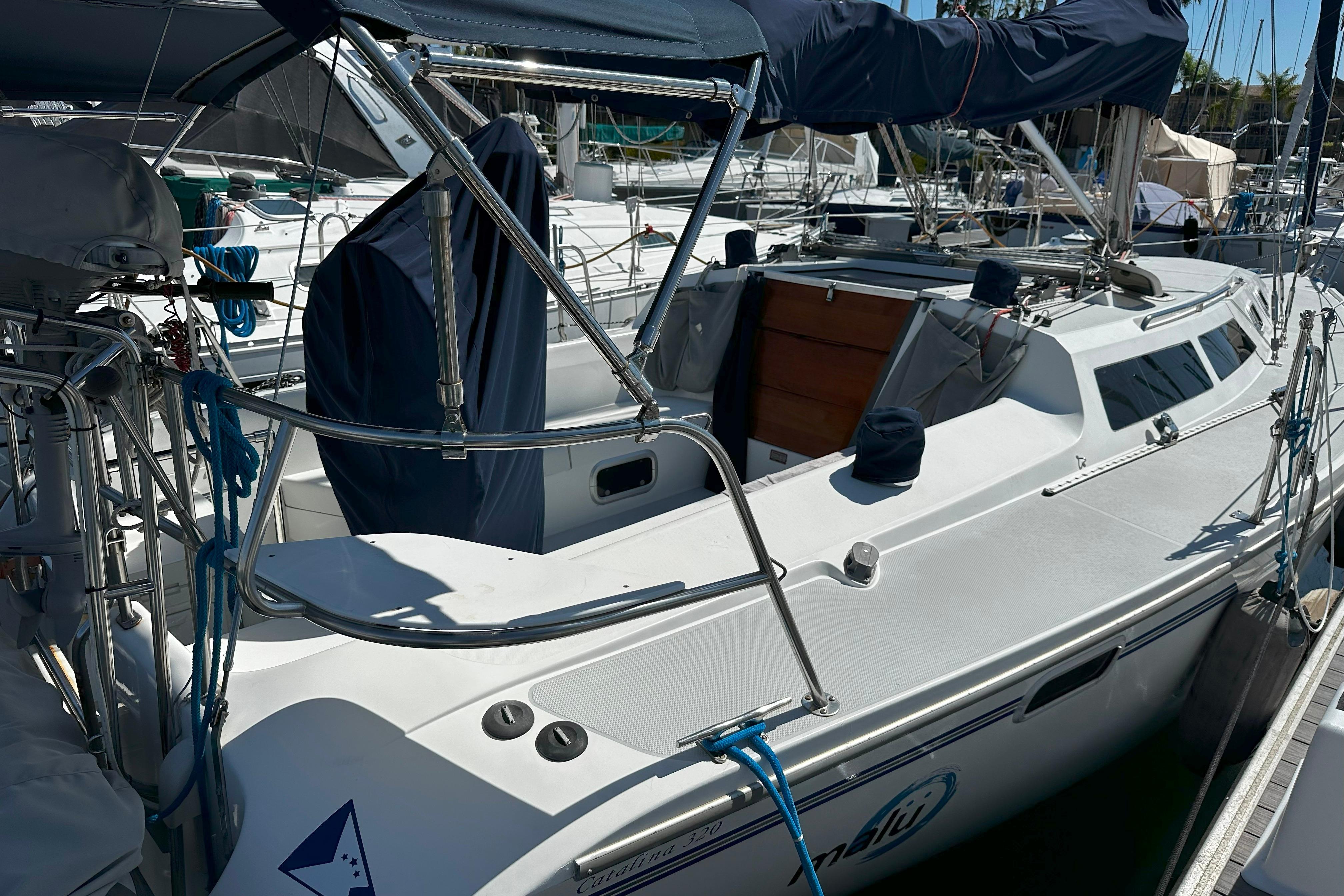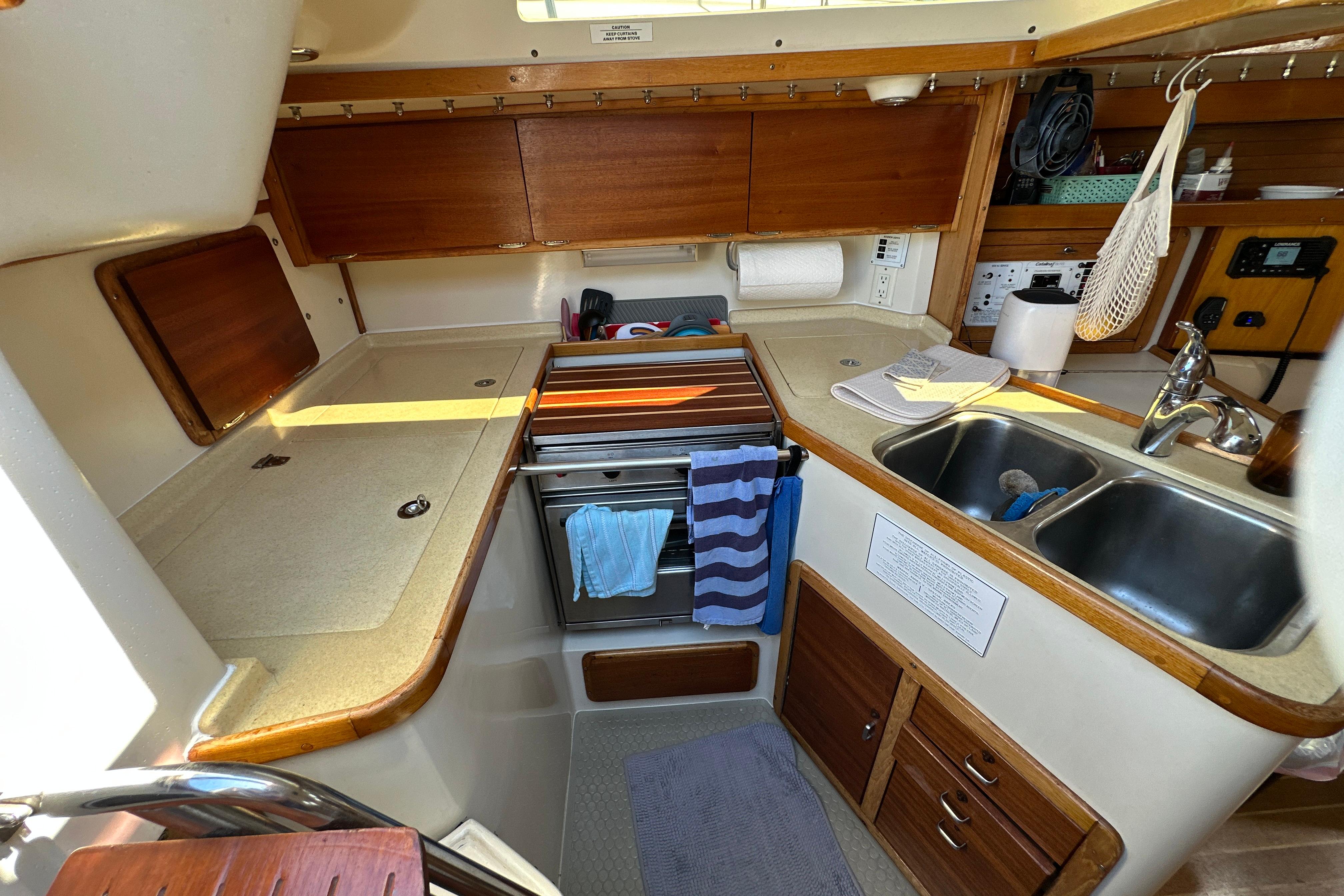The Catalina 320 sleeps 7 with an aft cabin double, V-berth double, convertible dinette