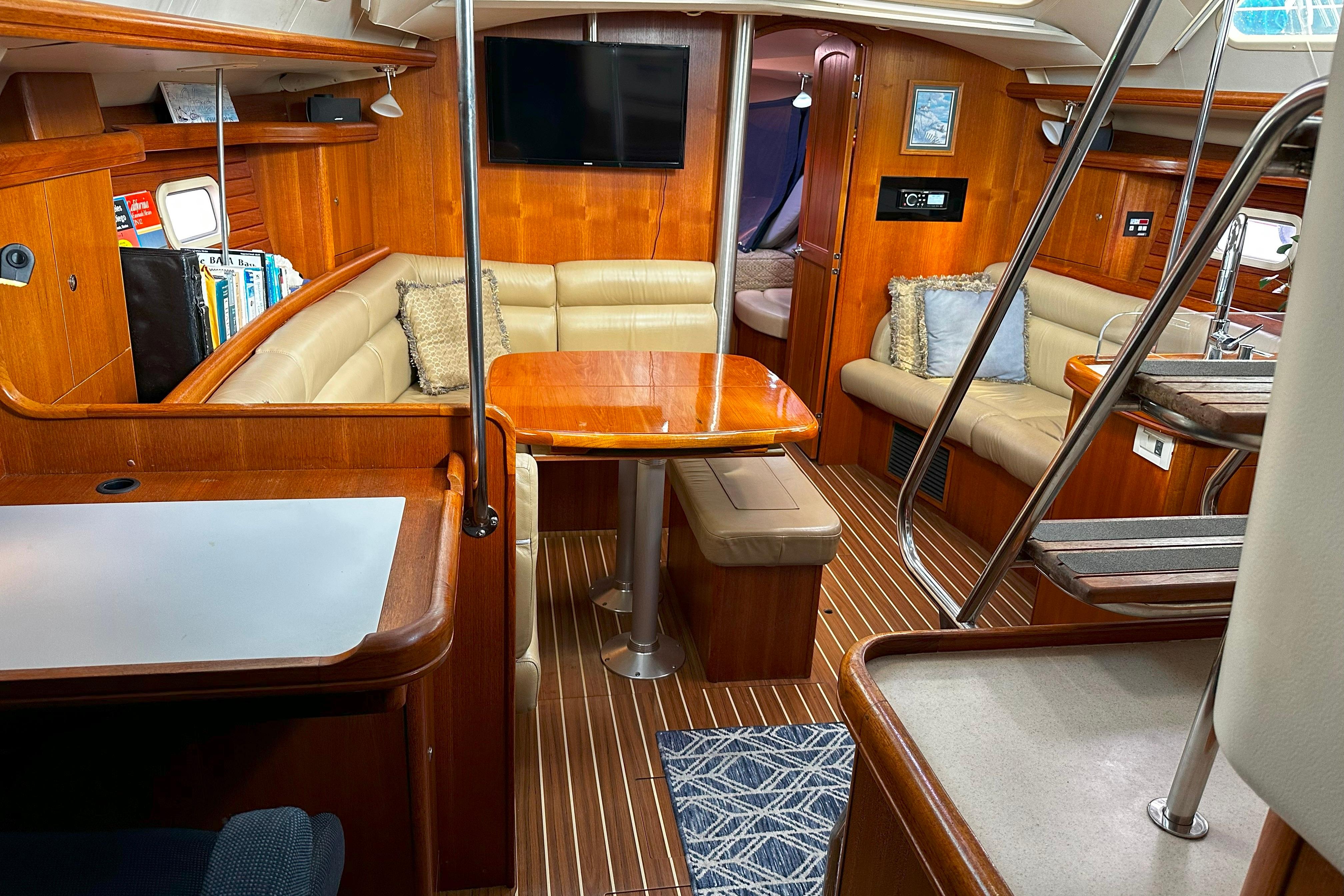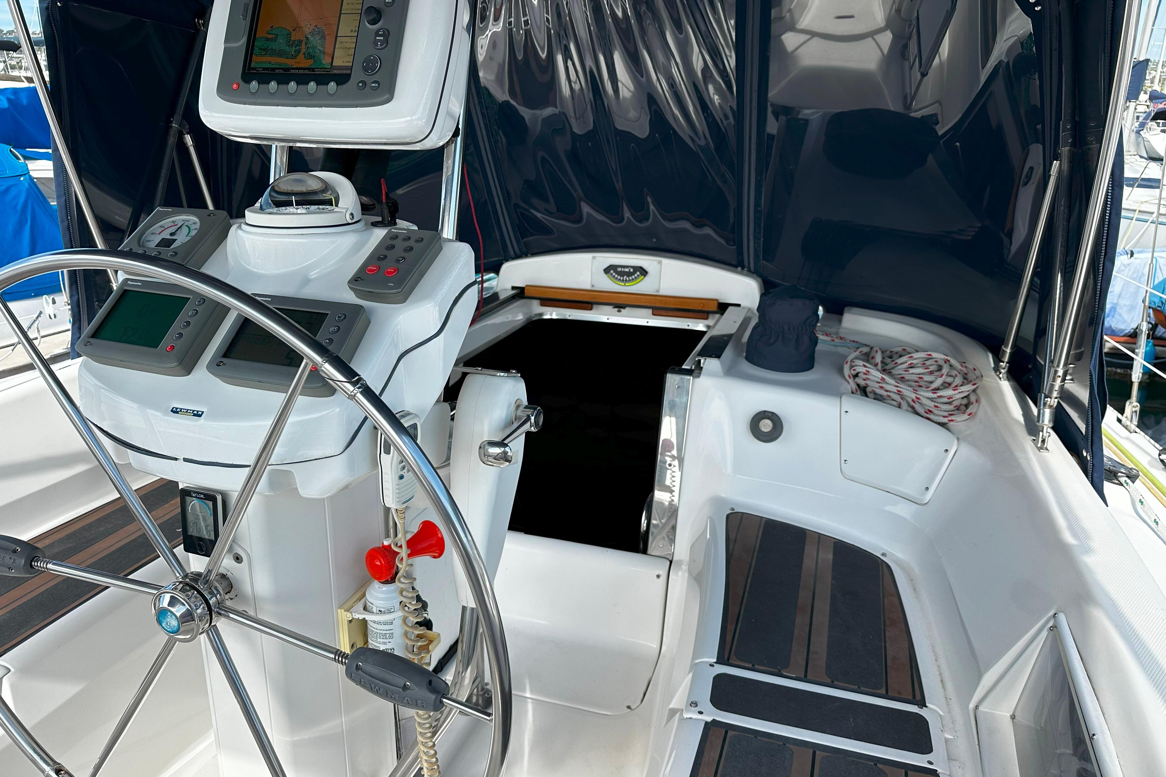 Cockpit Optimized for Single-Handed Sailing: All lines led aft, self-tailing winches, and an efficient helm layout make this boat easy to sail solo or short-handed.