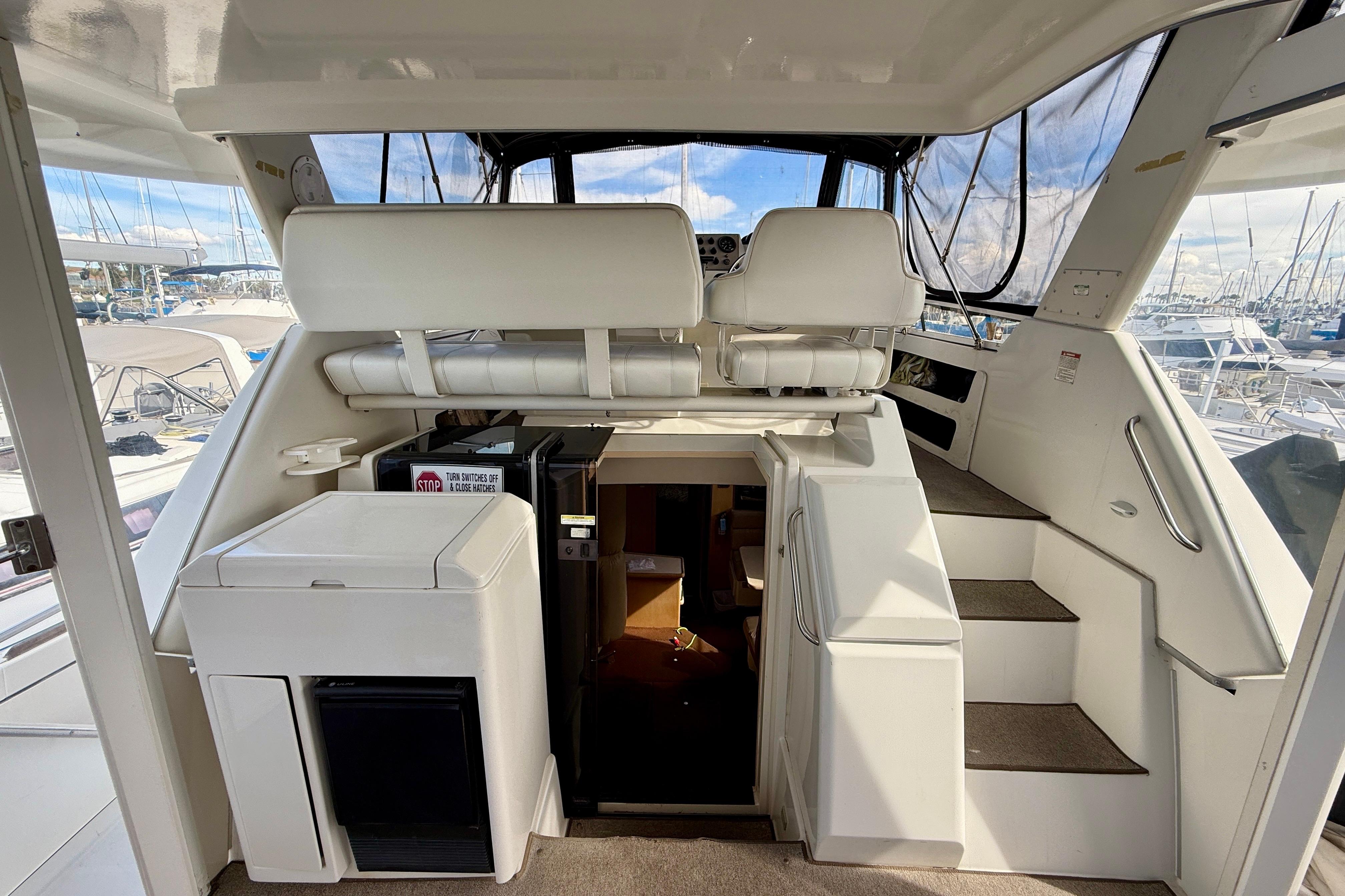 Turn the key and start your next adventure—this Carver 355 is ready to make waves. Contact us today to schedule a viewing!