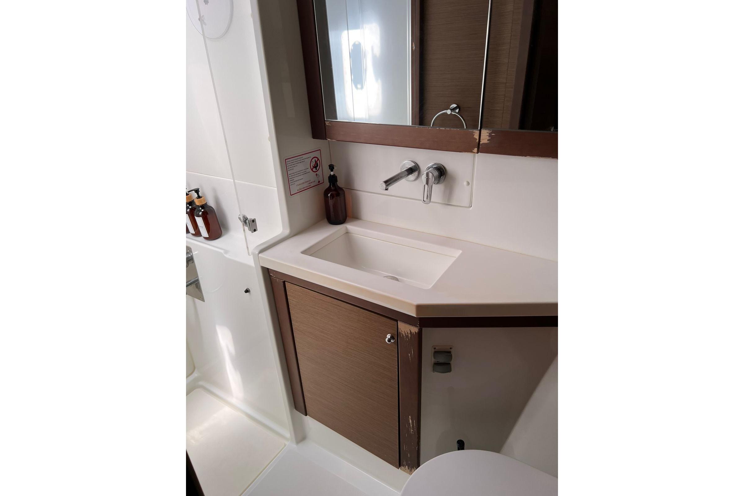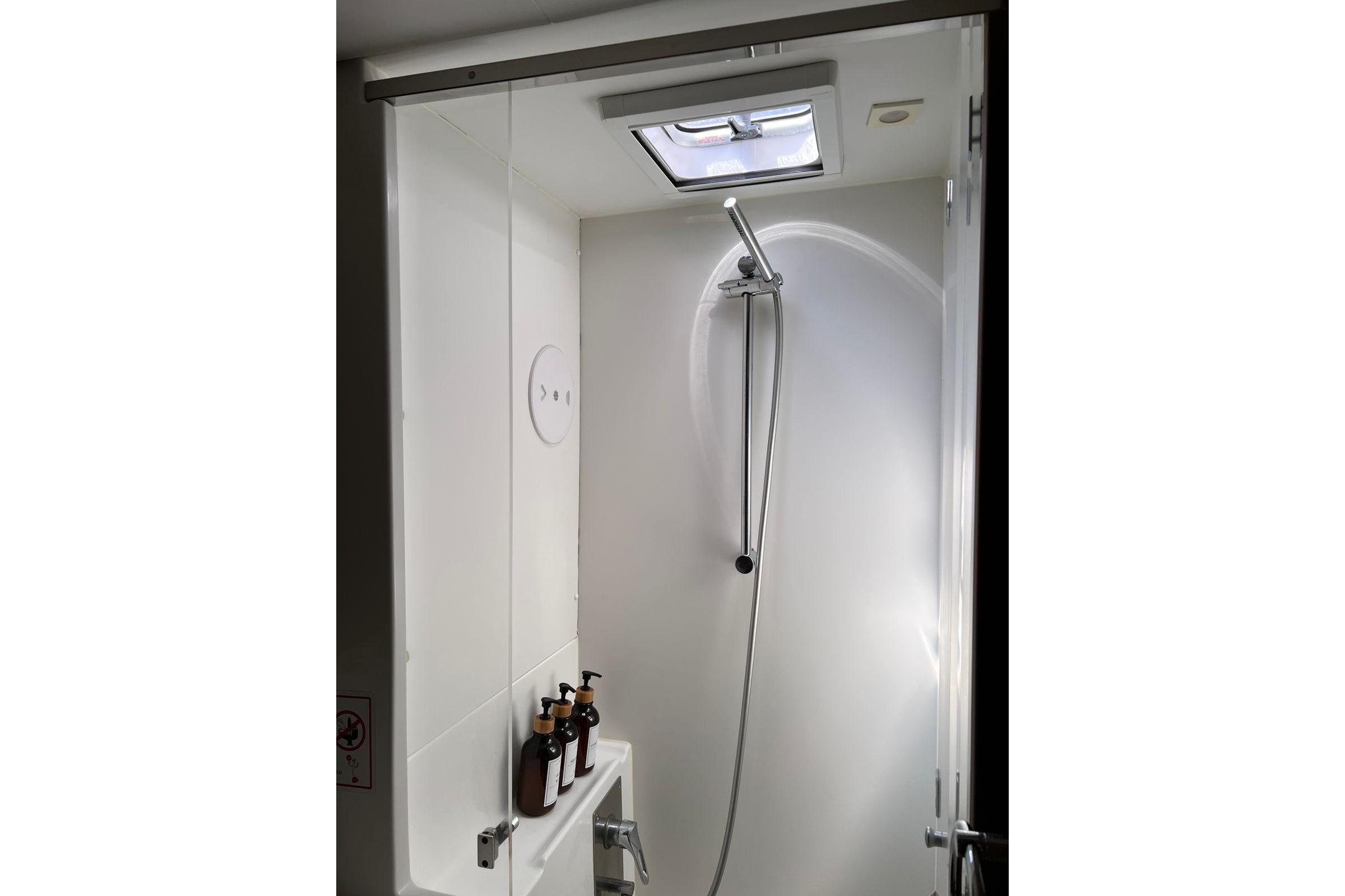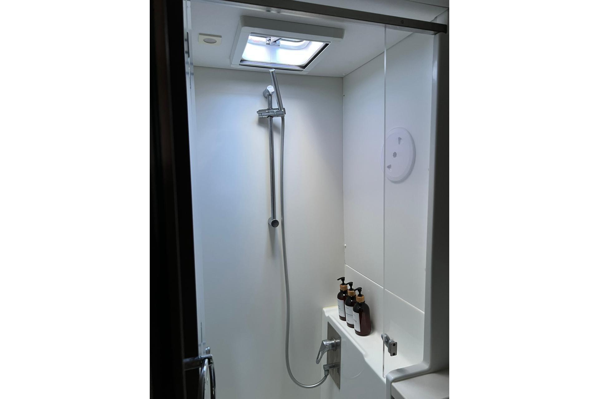 ● 4 Cabin / 4 Head layout, all cabins identical in size and fitted with independent enclosed showers (dry heads).