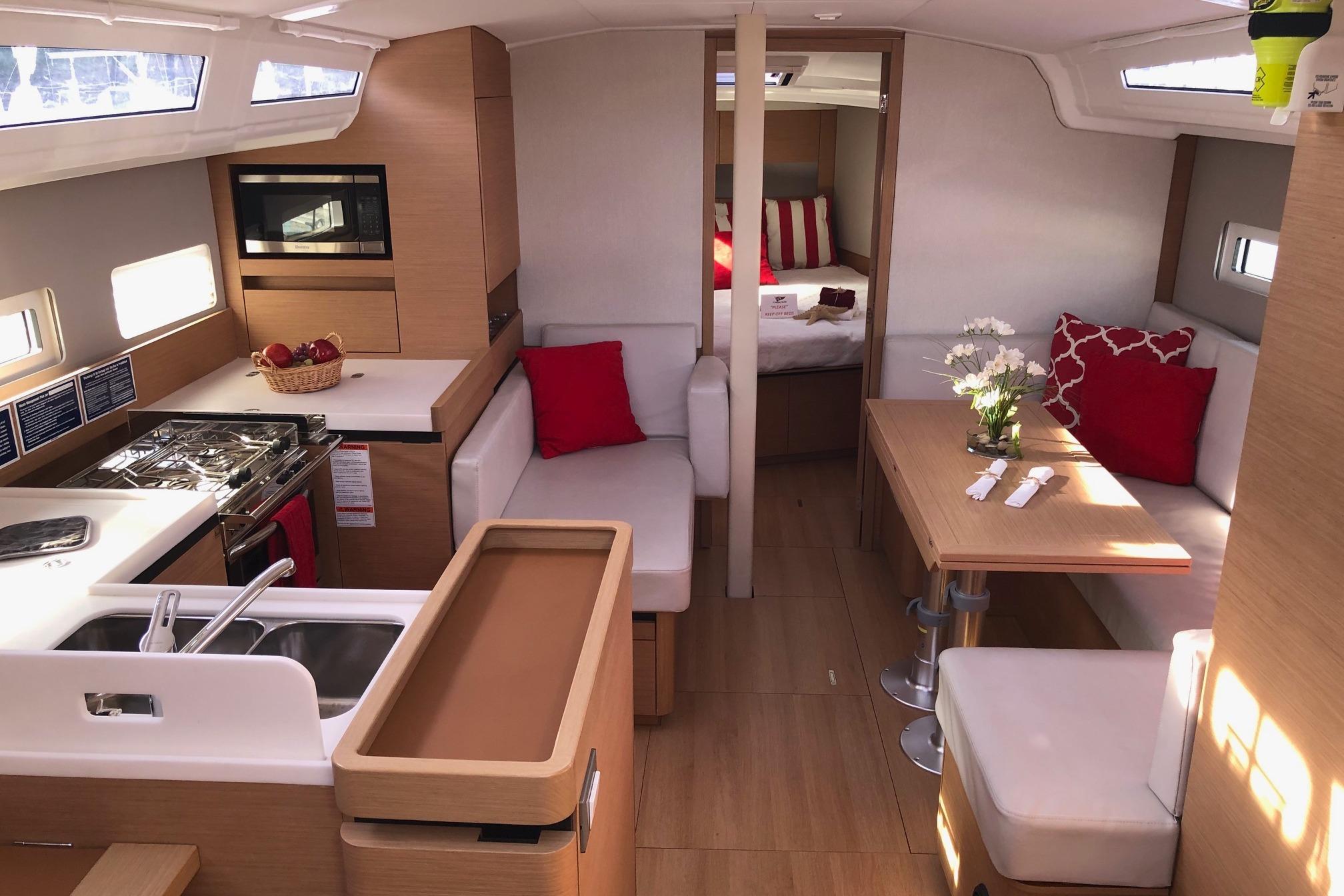 Safety and dependability are Jeanneau's priorities, but the Jeanneau is also known for their excellent seafaring qualities. The Lombard designed, hard chine hull combined with a high aspect rig, ensures the boat delivers on a high performance aspiration and also leads to stability. Even the most competitive sailor will love the speed, responsiveness and ease of handling at the wheel.