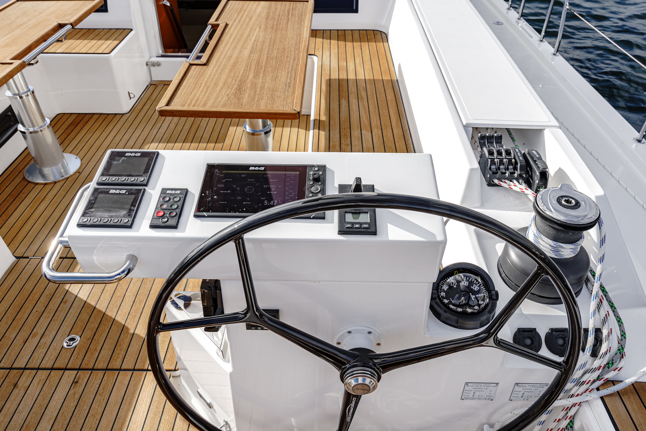 The BAVARIA C57 isn’t just impressively large, it sails perfectly too. Standing at either helmstand you can enjoy an exceptional view of the sails and the whole yacht. All of the important navigating instruments are available at both steering pedestals, as is the electrical motor control system. All of the sheets and halyards are fed directly to the 2 x 2 winches right in front of the steering pedestals. A self-tacking jib, larger overlapping genoa, gennaker and Code 0 are all there to help make the sailing great, whatever the conditions.