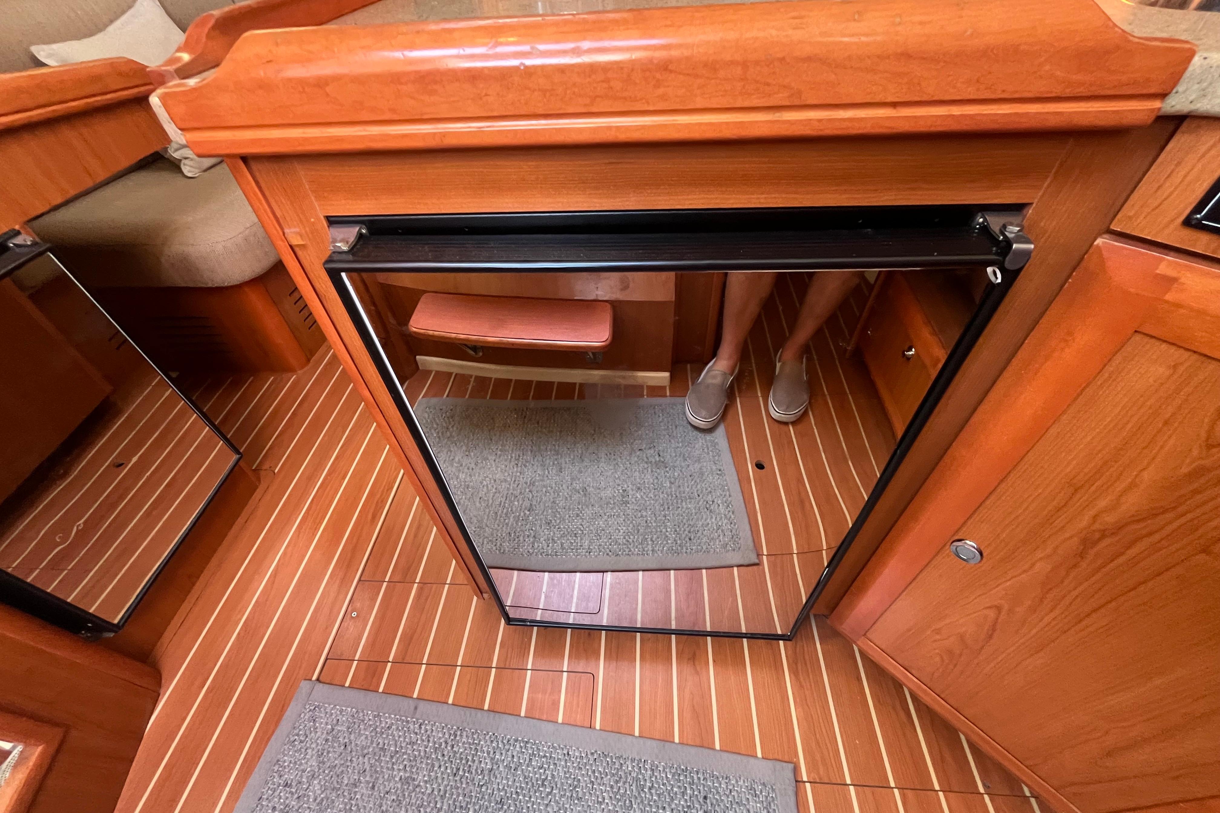- Also includes a small inverter to power the TV while underway. There are two refrigerator freezers on board, along with a convection/traditional dual purpose microwave.